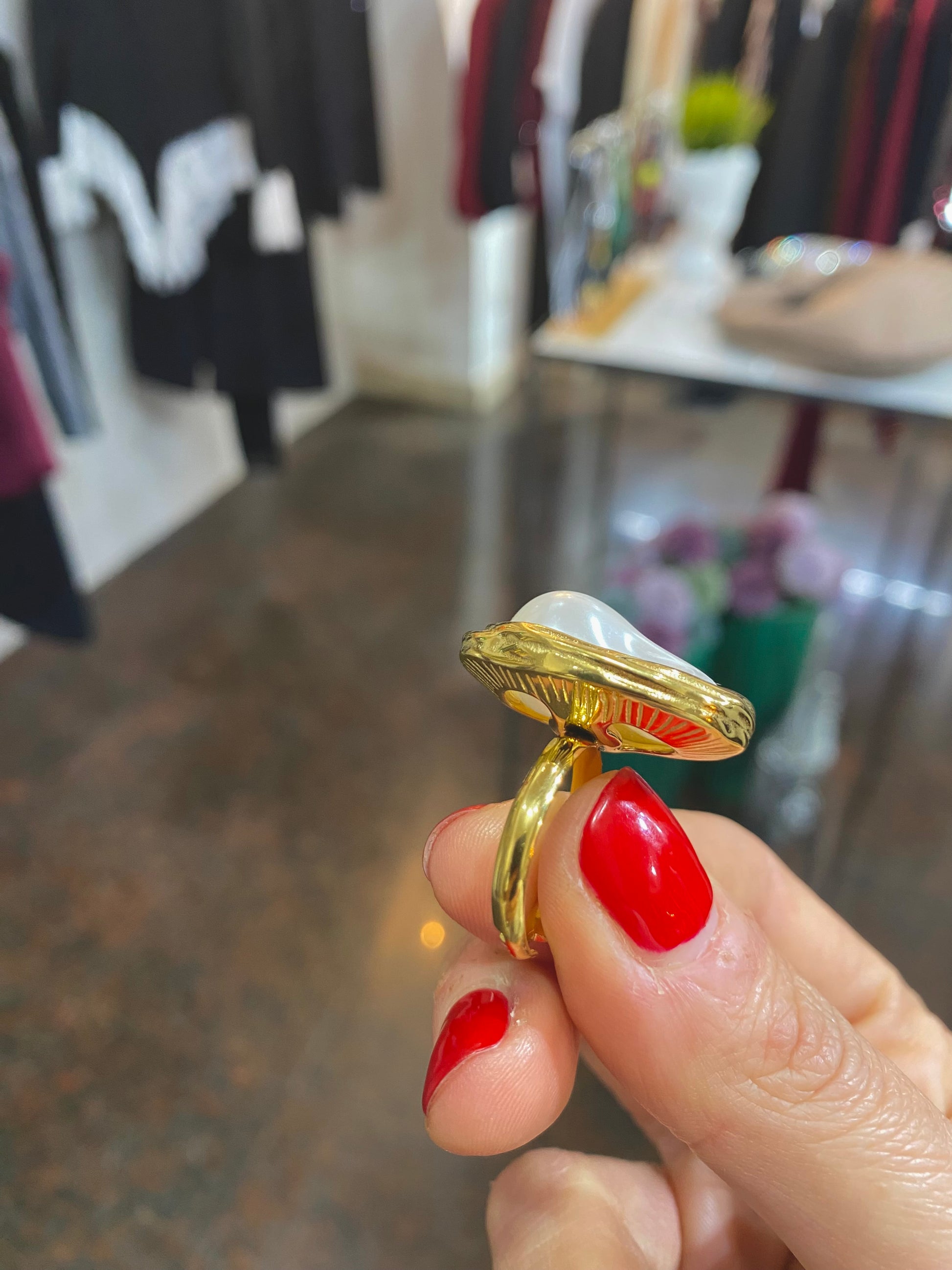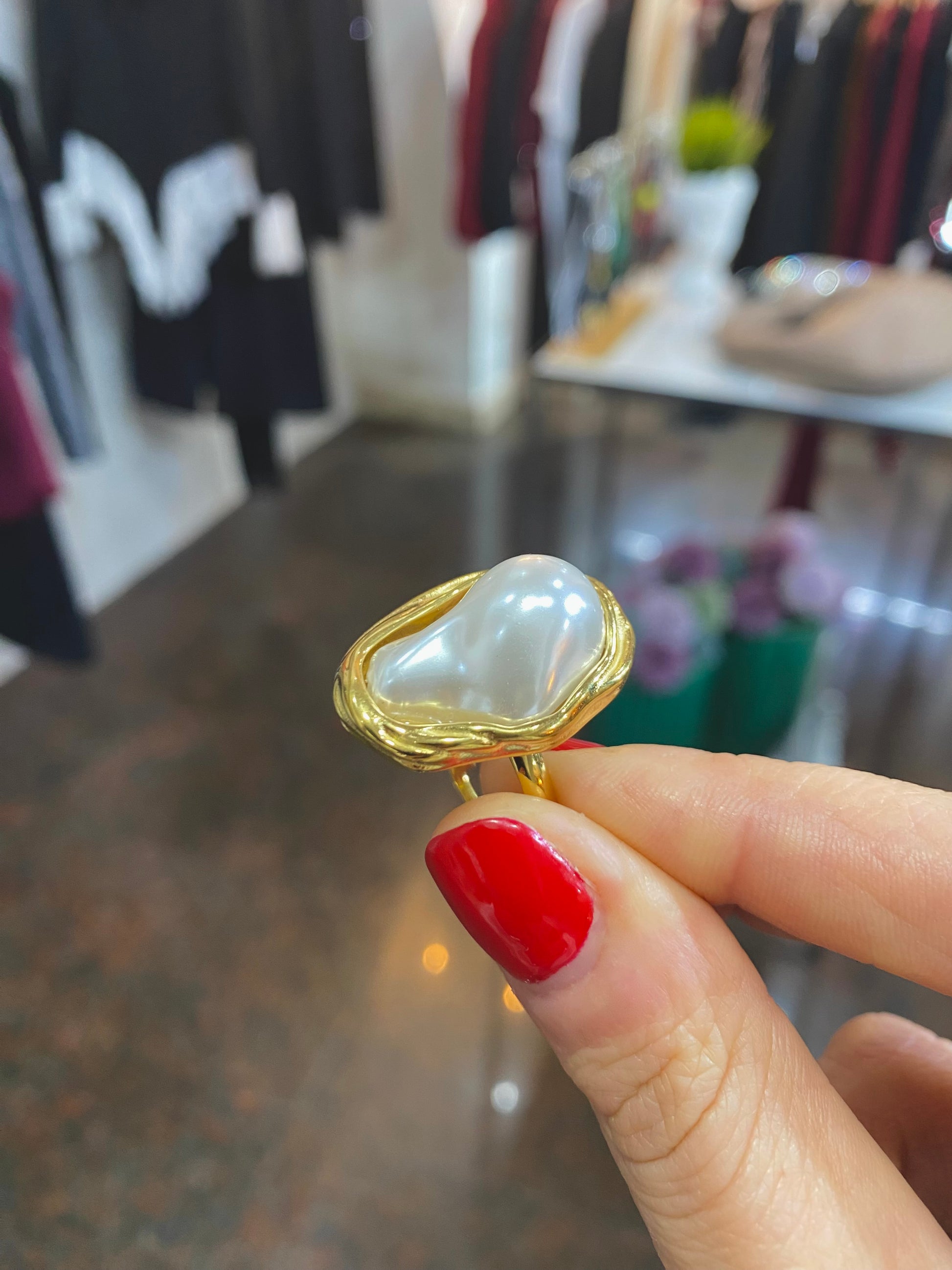 anello con maxi perla asimmetrica
