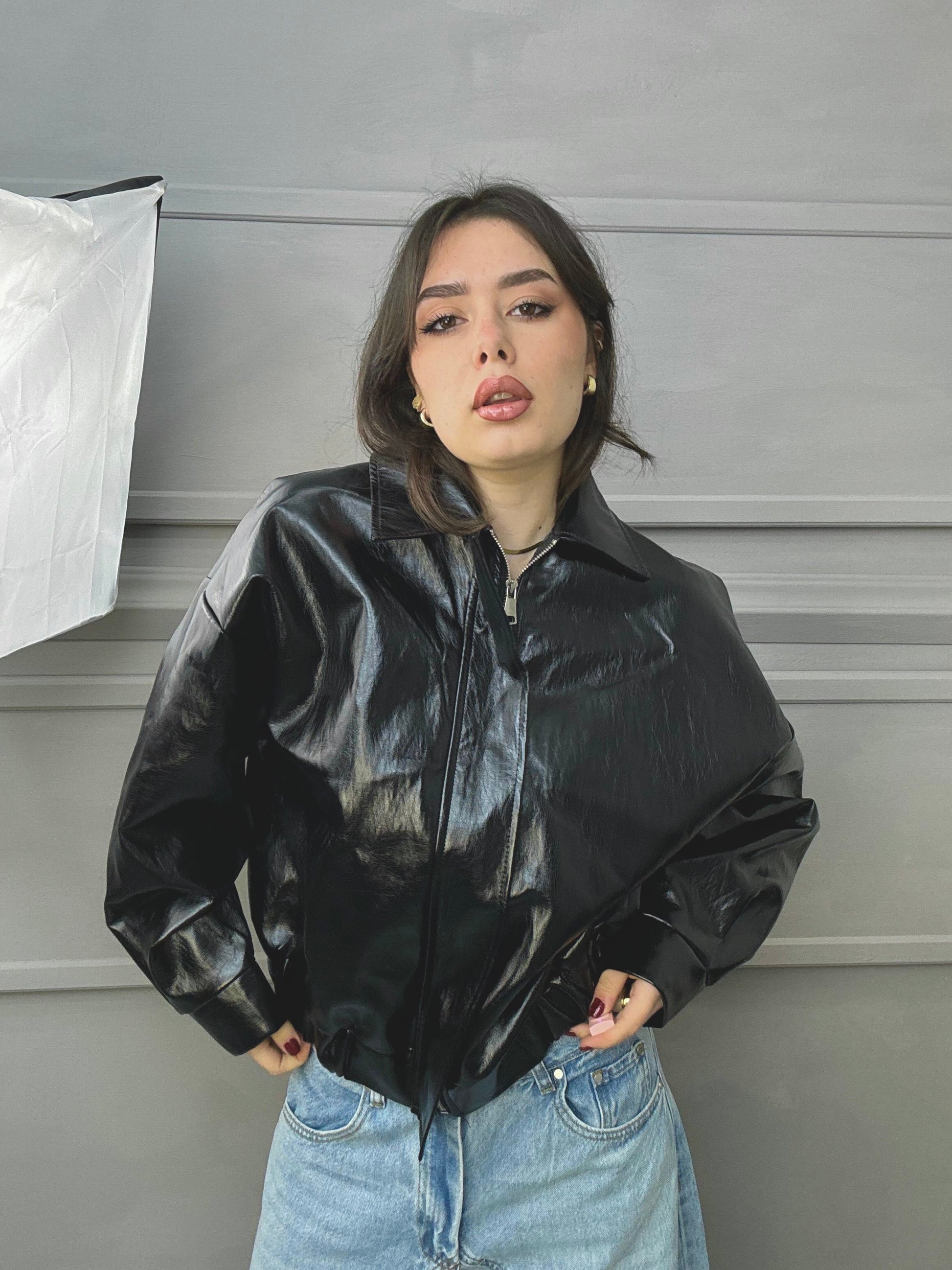Bomber in ecopelle lucido