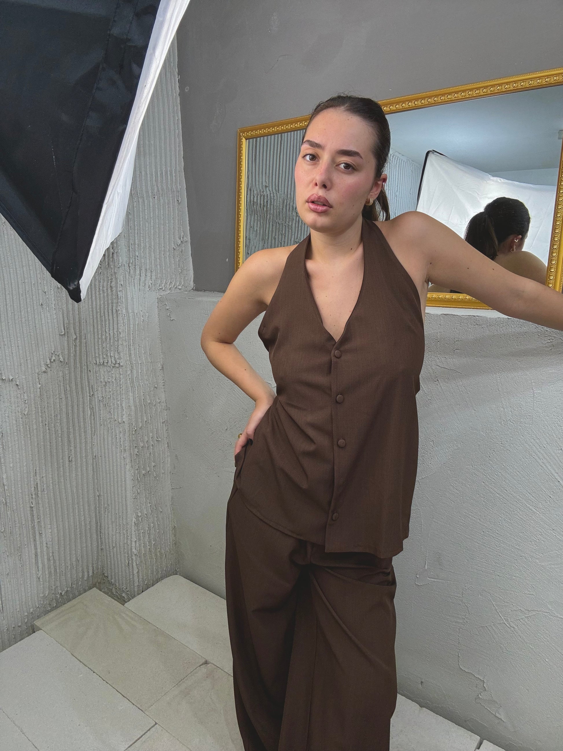 Tailleur composto da gilet con allaccio americano