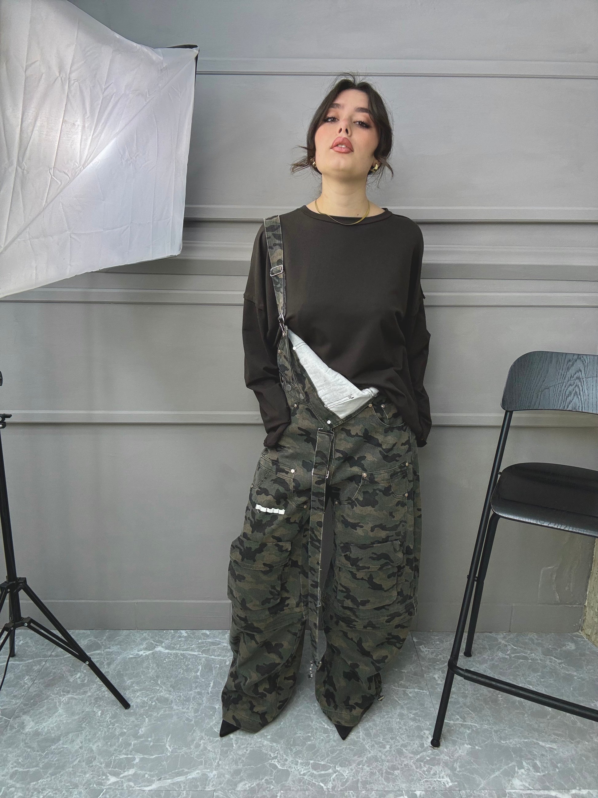 Salopette in jeans militare