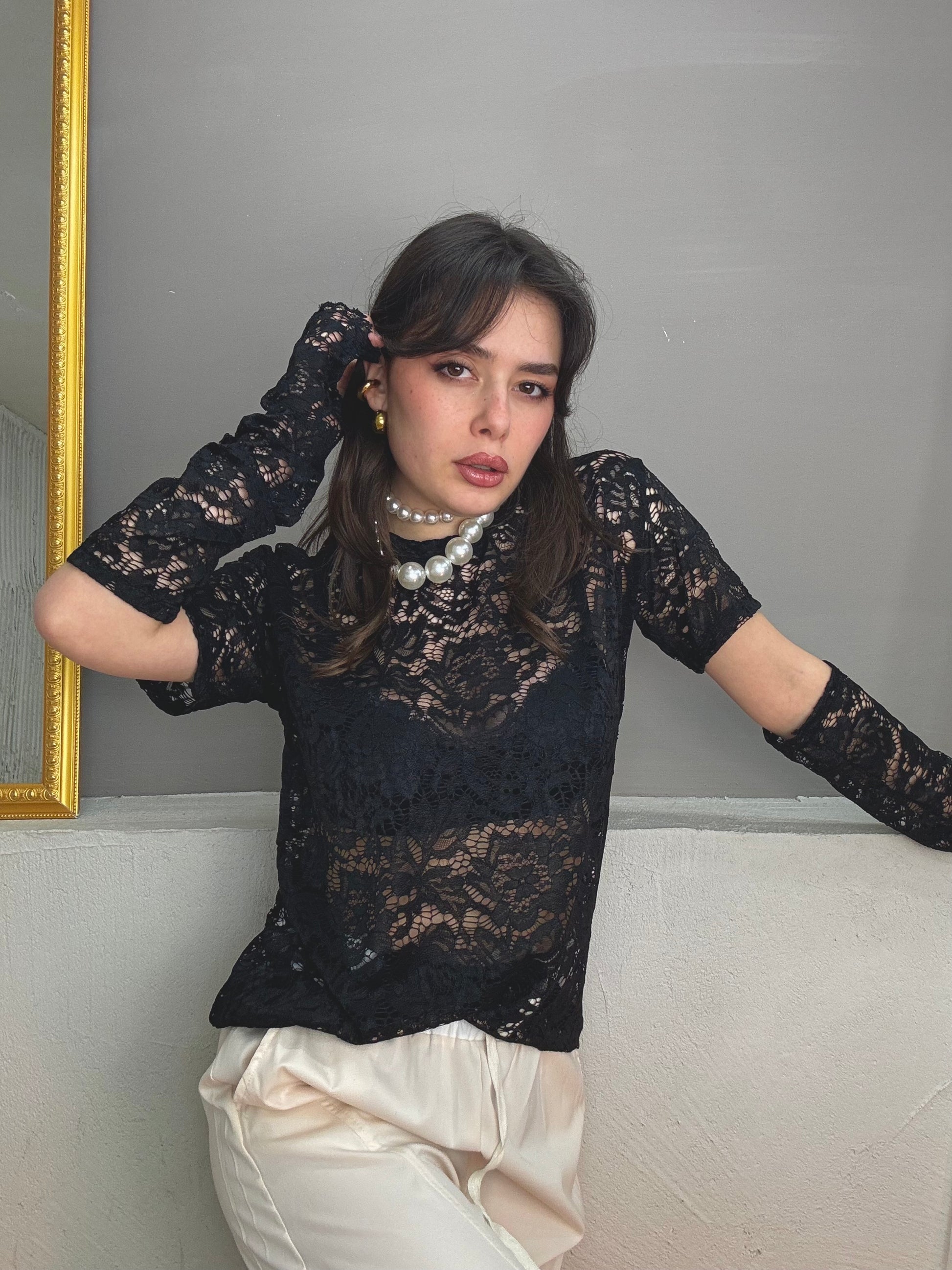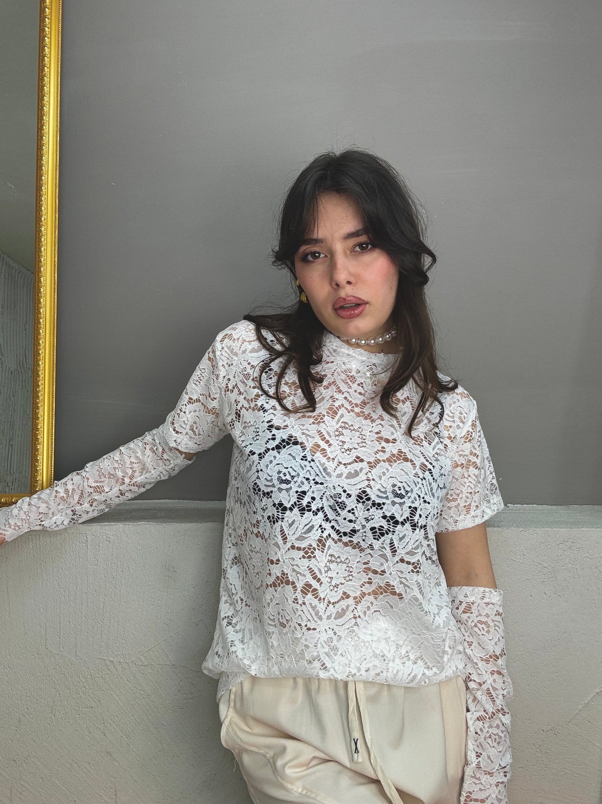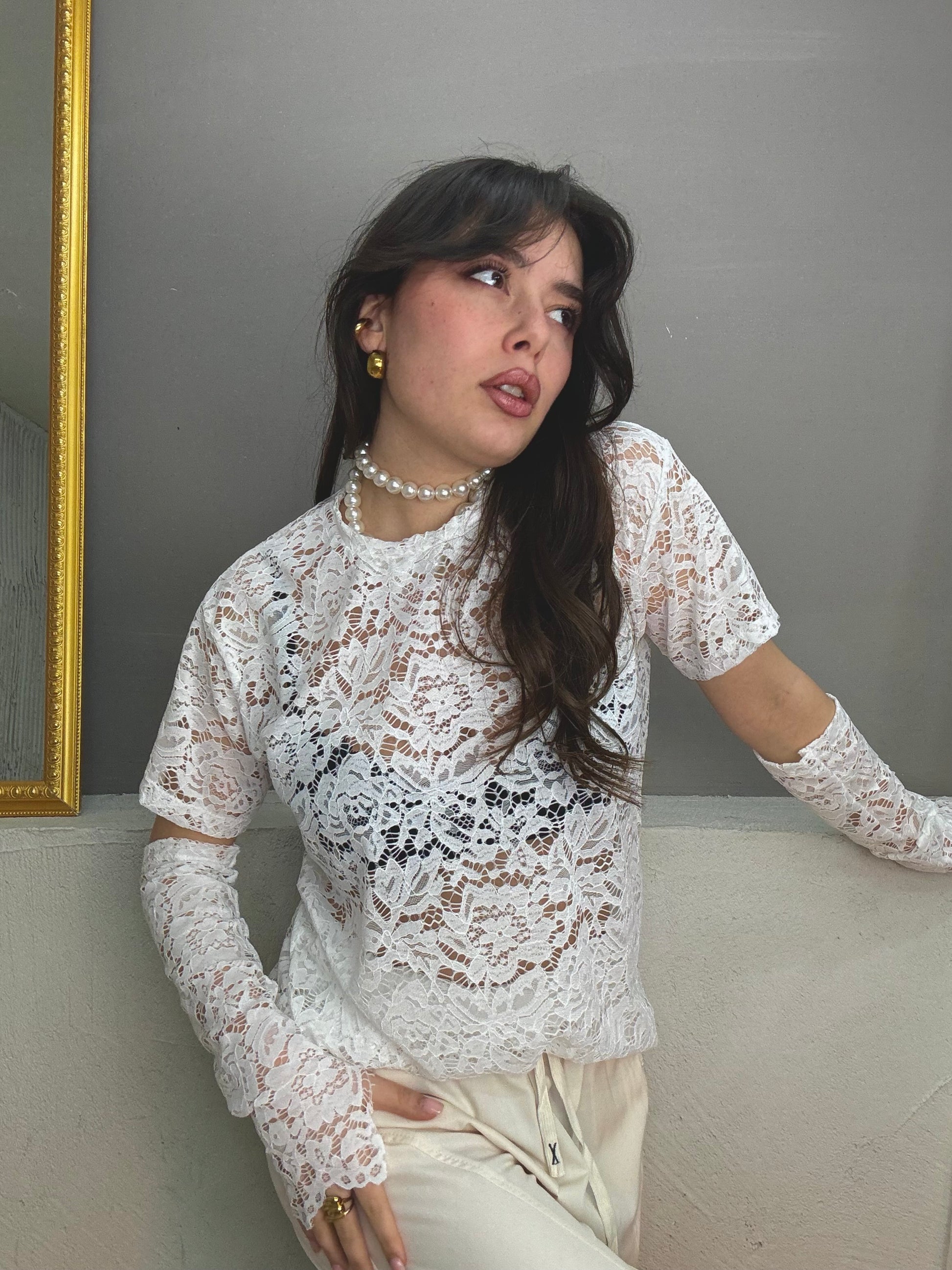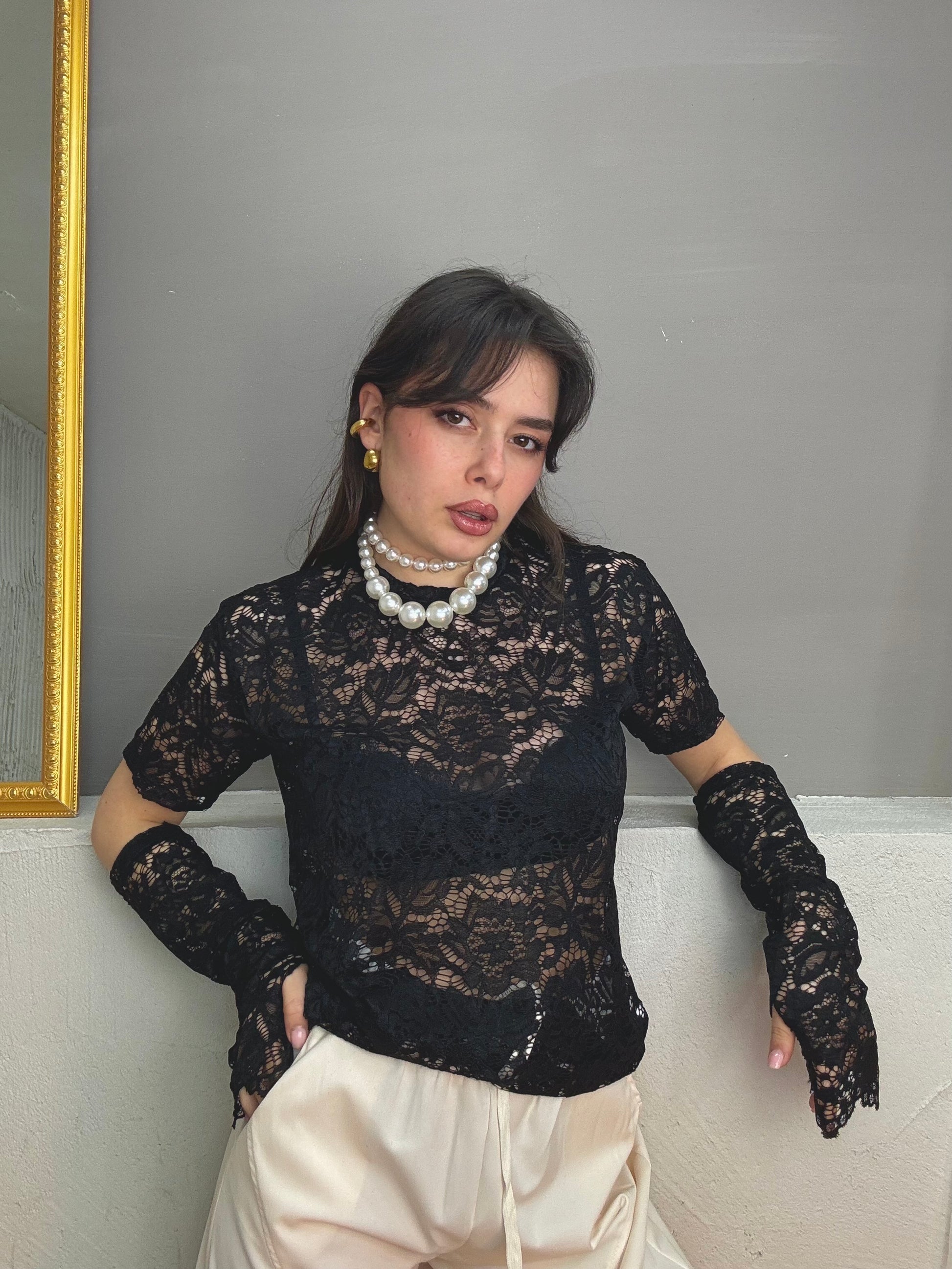 maglia taglio T-shirt in pizzo